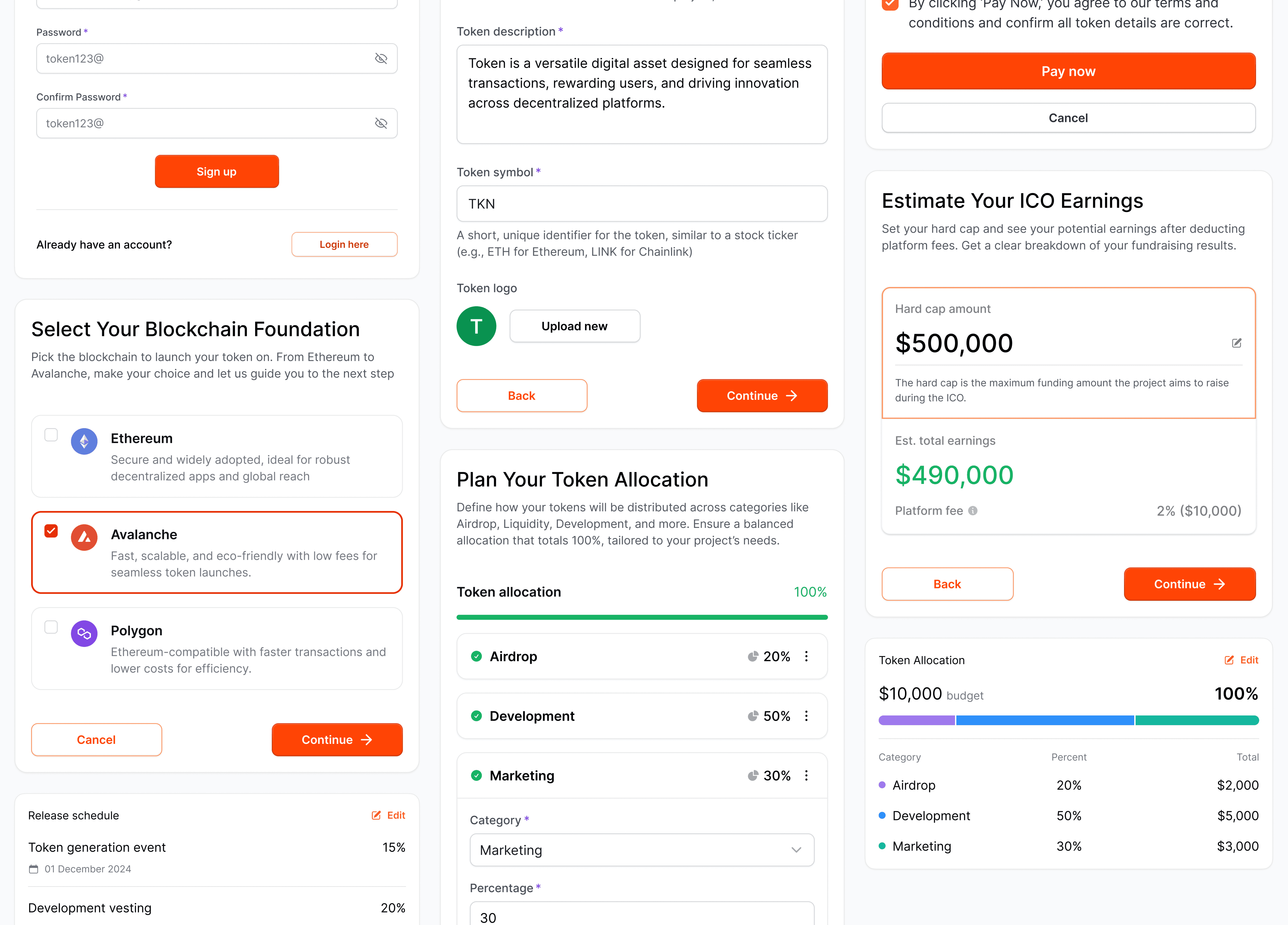 We replaced rows of intimidating smart contract code with a sleek, linear dashboard designed to empower the creator at every touchpoint. From the initial logic of selecting a blockchain foundation to the granular details of projected ICO earnings, every screen within the Tokenomics ecosystem is a masterclass in transparent precision.